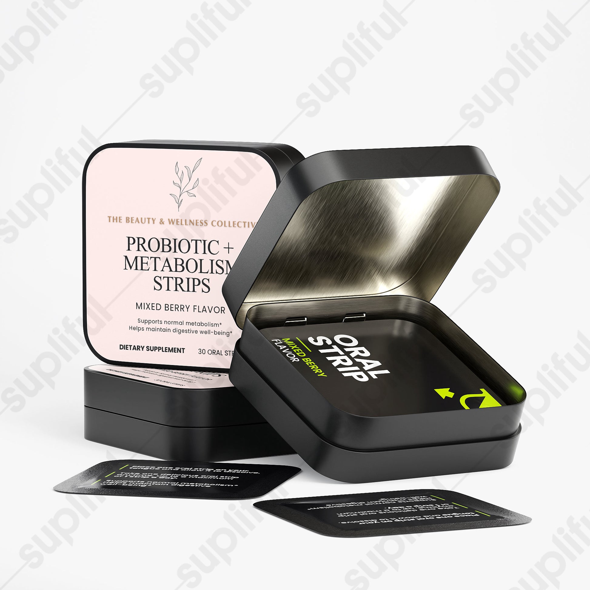 Probiotic + Metabolism Strips are designed to make supporting your digestive wellness effortless. Each strip contains Bifidobacterium lactis, a probiotic that helps support a healthy balance of gut bacteria, combined with polydextrose, a prebiotic fiber that fuels beneficial bacteria. Together, they work in harmony to promote digestive balance as part of your overall health routine.